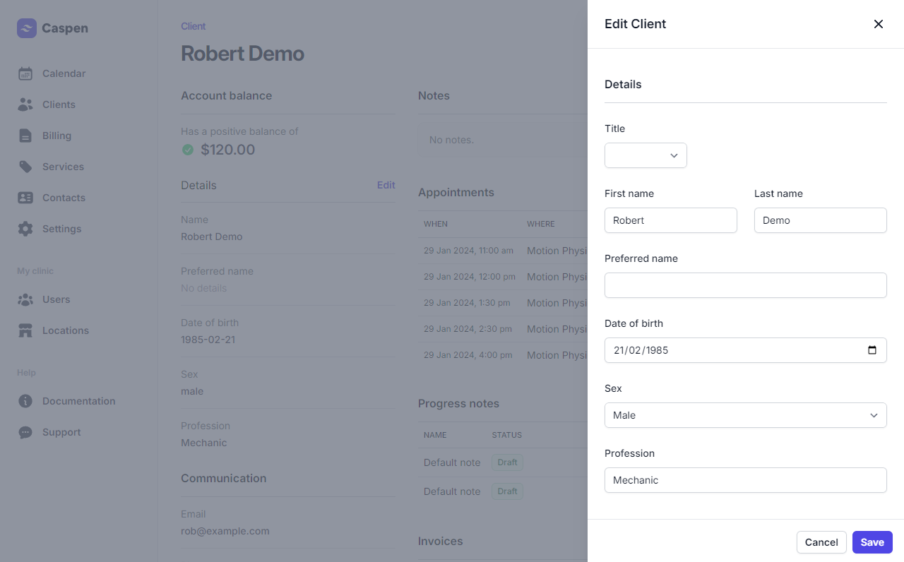 Caspen is designed for Allied Health clinics. Offering seamless client scheduling, secure invoicing and payments, comprehensive progress notes, intelligent workflow automation, and more.